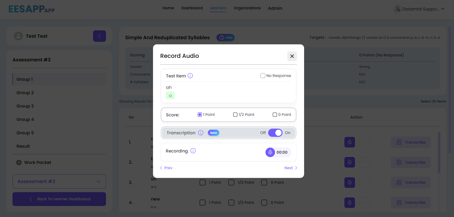 Most humans learn to speak quite easily, with no special training. For those who don't, the task falls to others, who may find it beyond daunting to figure out where to start. But there's no reason that we should expect ourselves to know how to do this. However, the EESAPP-App takes Dr.Esch's EESAPP Guide and Protocol and automates much of the process of creating a speech program for your learner. This revolutionary app not only guides you through the assessment, but uses Artificial Intelligence and the ability to record your learner's responses during the assessment to help guide your entire team to create an individualized speech program for each of your learners.